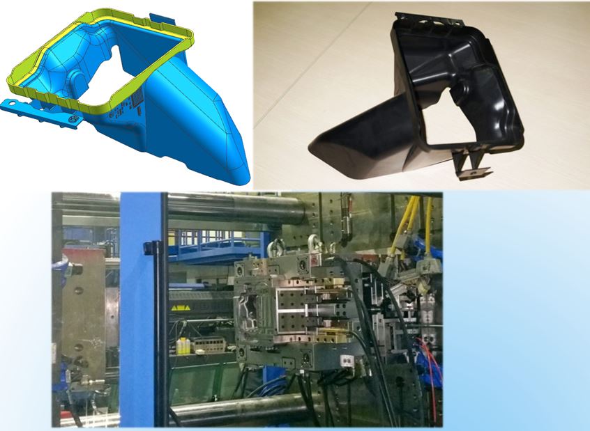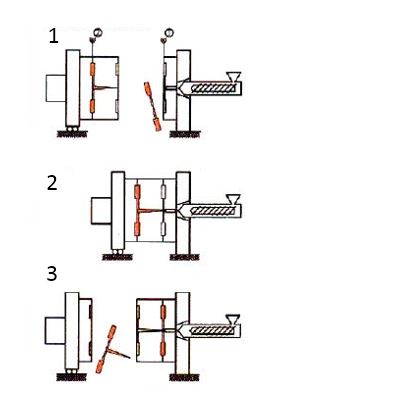 For two-component parts, the first injection is moved to the second injection position through a 180 degrees turning