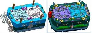 A stack mold are the two (or more) mold parting surfaces. A stack mold does not require much more clamp force than a single face mold because the projected part surface areas of the cavities on both sides of the center block cancel out each others force. The largest advantage to this design is the doubling of machine capacity.