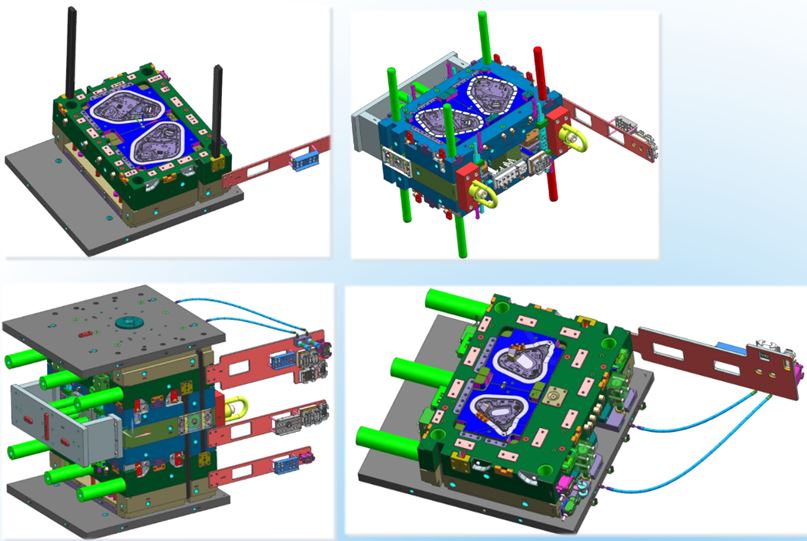 Tandem mold a type of stack molding process in which the parts are injected in alternating cycles. While the molding machine opens to demold one parting line, the other is held together by a locking system. The technology can be employed in almost any standard injection molding machine and offers all of the benefits of stack molding as well as extended cooling times.